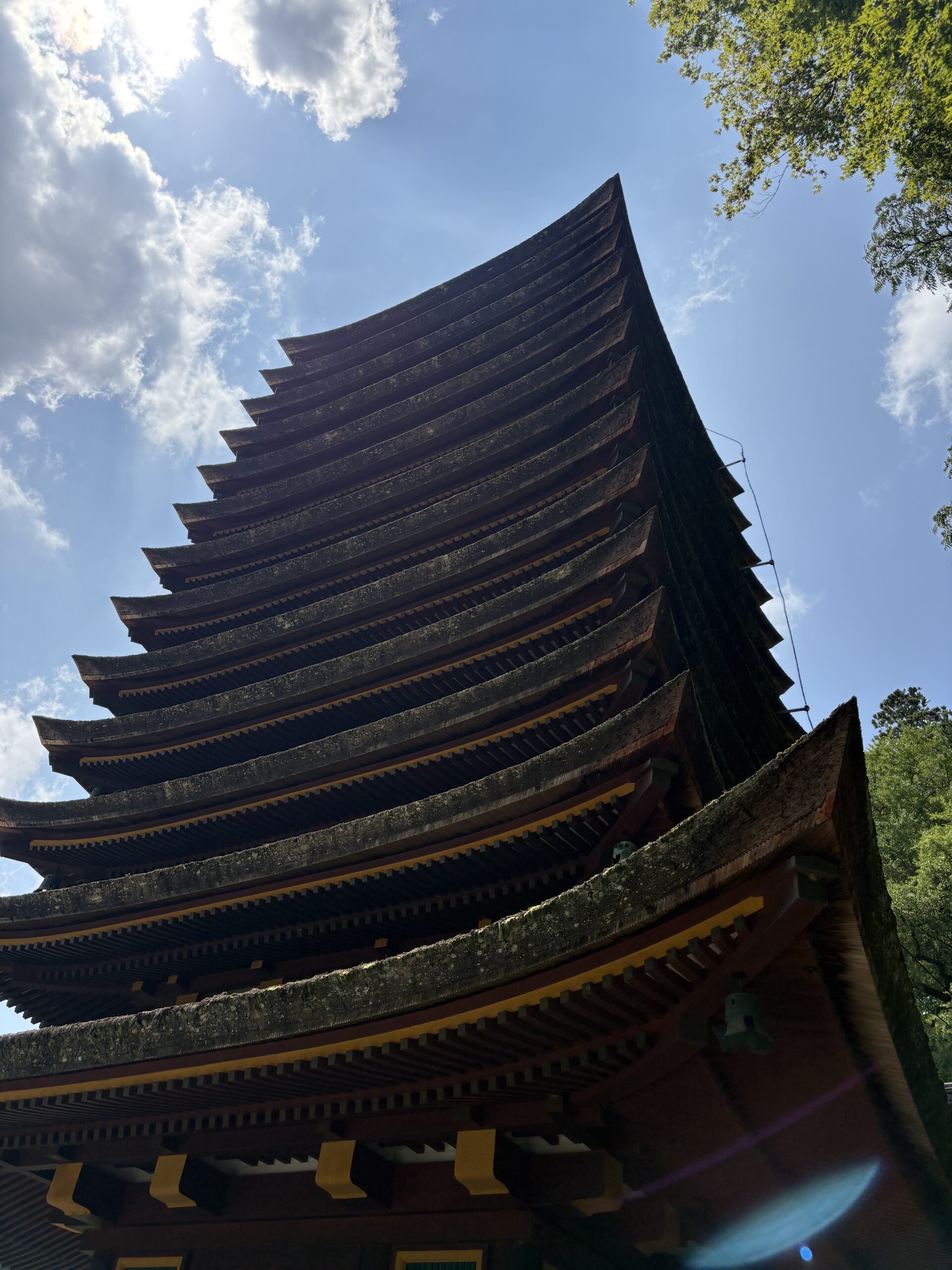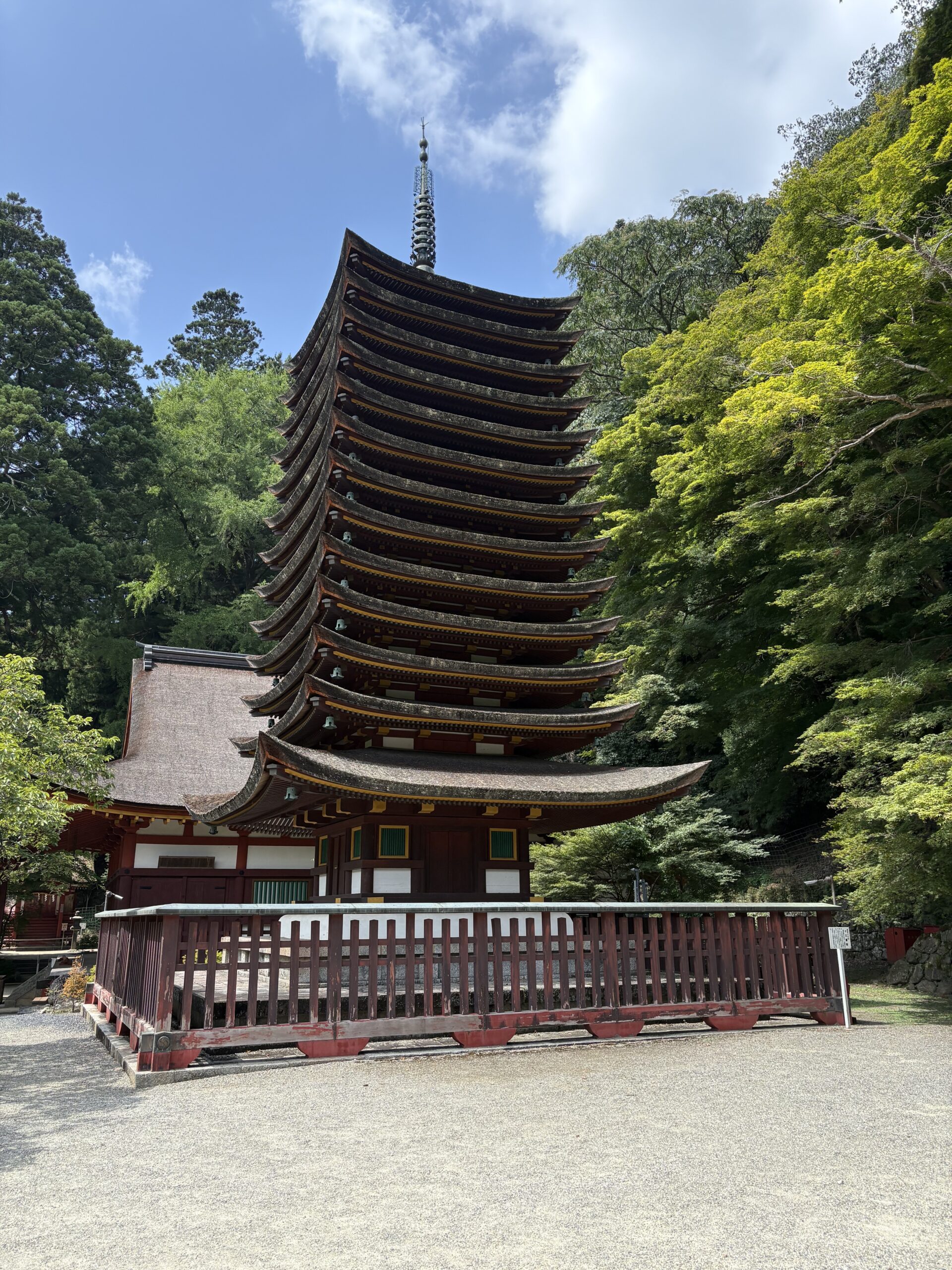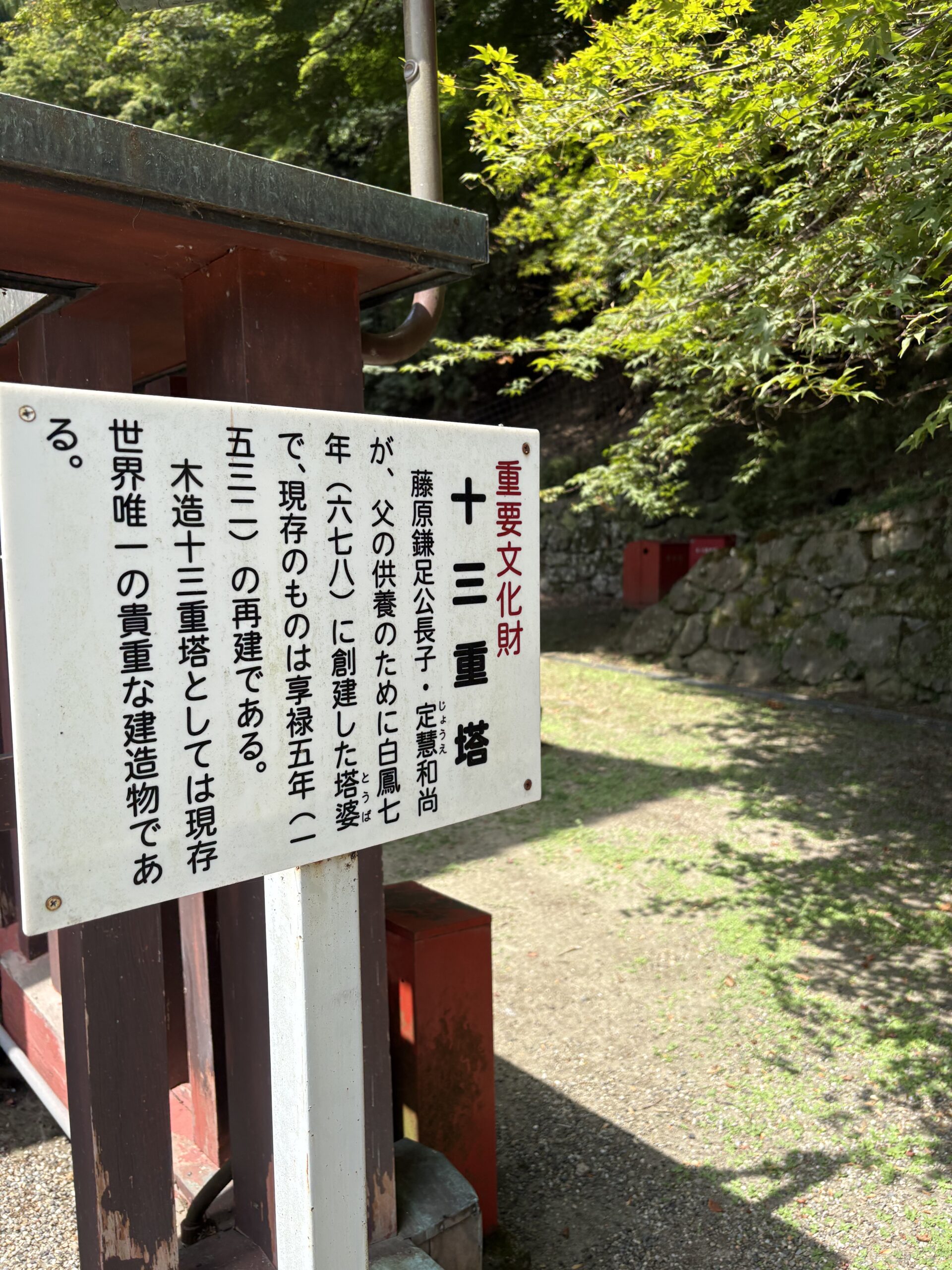 藤原鎌足を弔うために建立した談山神社のシンボルでして、現存している建物は室町時代に再建されたもので、木造十三重塔としては世界唯一だそうです。